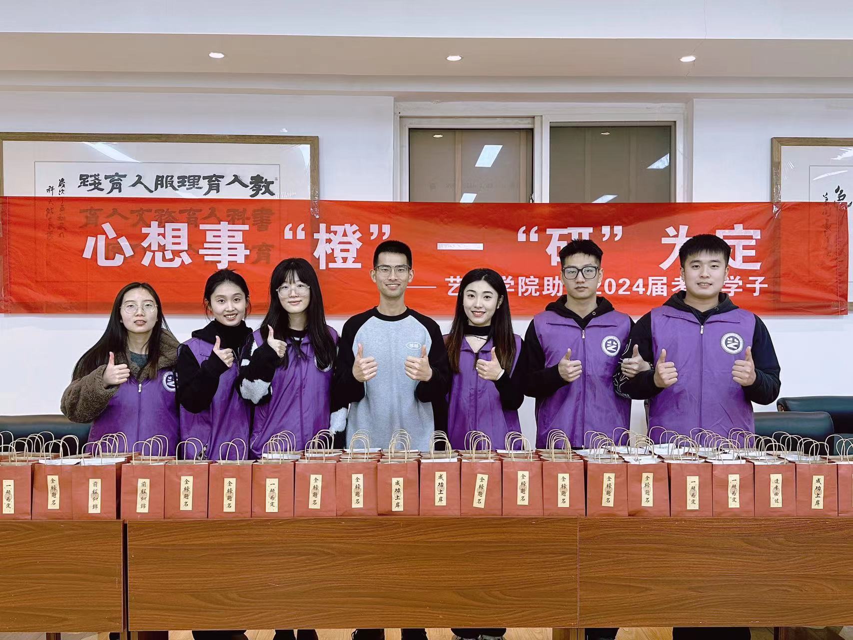 2024年全国硕士研究生招生考试在即,为帮助考研学子坚定备考信心,缓解备考压力,传递温暖和力量,12月15日,十大体育网站开展主题为“心想事‘橙’,一‘研’为定”考研送温暖活动。2020级本科生辅导员杨橙及保研员工志愿者参加活动。