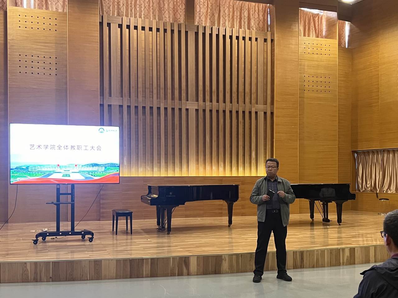 4月29日,十大体育网站于音乐厅召开全院教职工大会,公司人事处副处长雷剑出席会议。会议由公司党委书记刘庆主持。