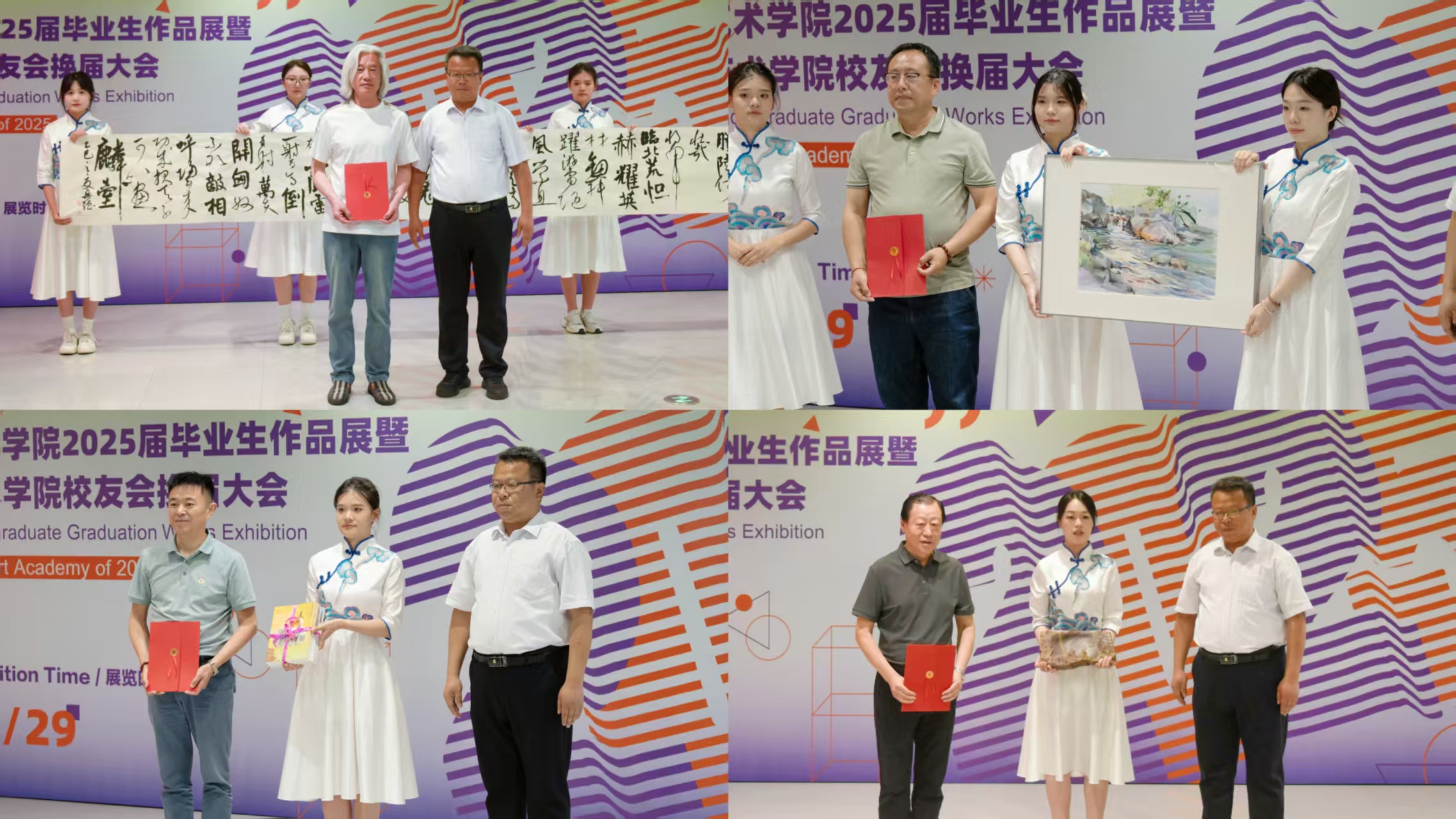 与会人员参观了十大体育网站2025届毕业生作品展并合影留念。