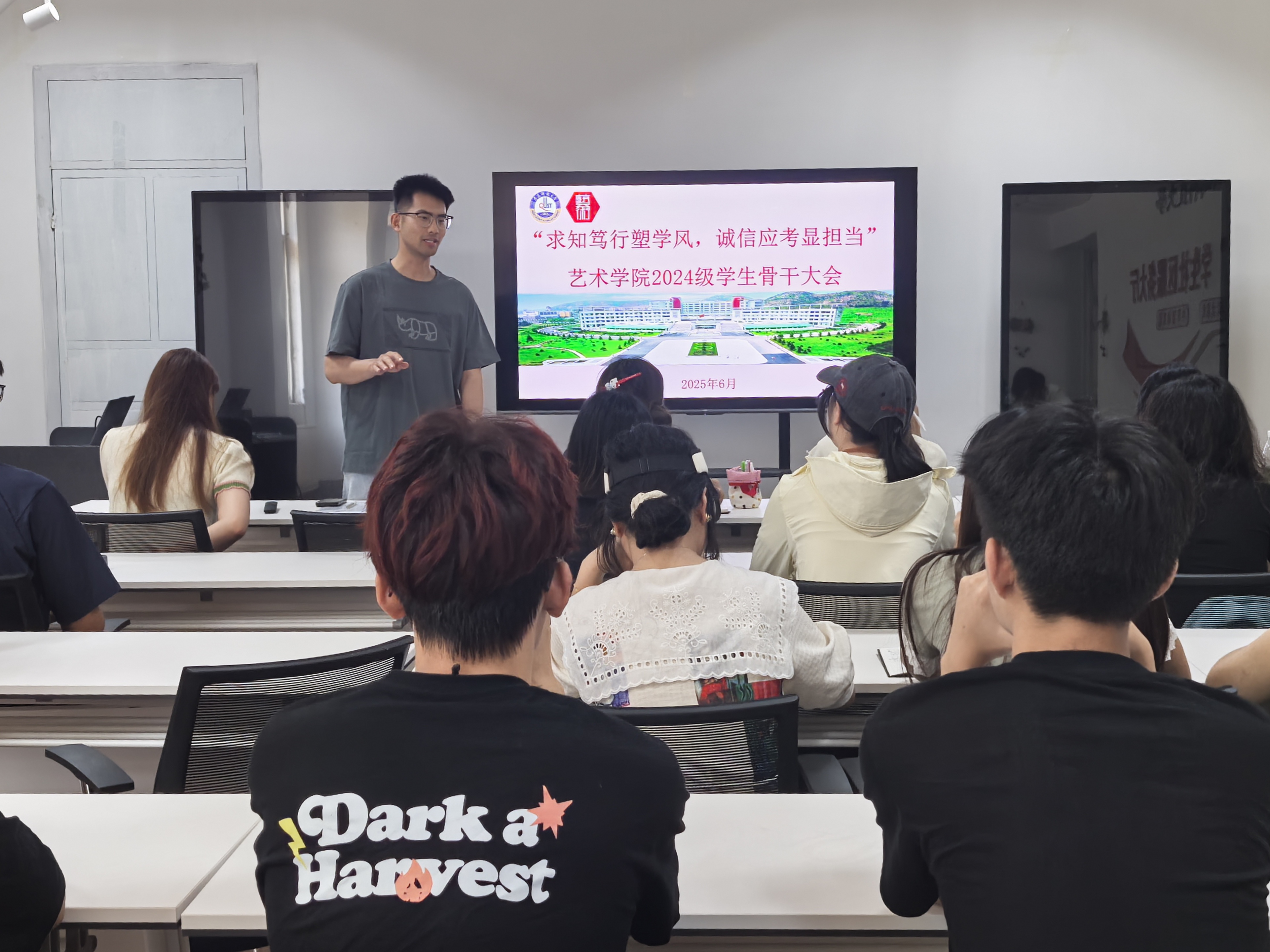 为加强学风建设,培育员工诚信应考意识,6月24日下午,十大体育网站于一站式员工社区举办“求知笃行塑学风,诚信应考显担当”主题动员会议。会议由辅导员杨橙主持,2024级全体员工干部参加。