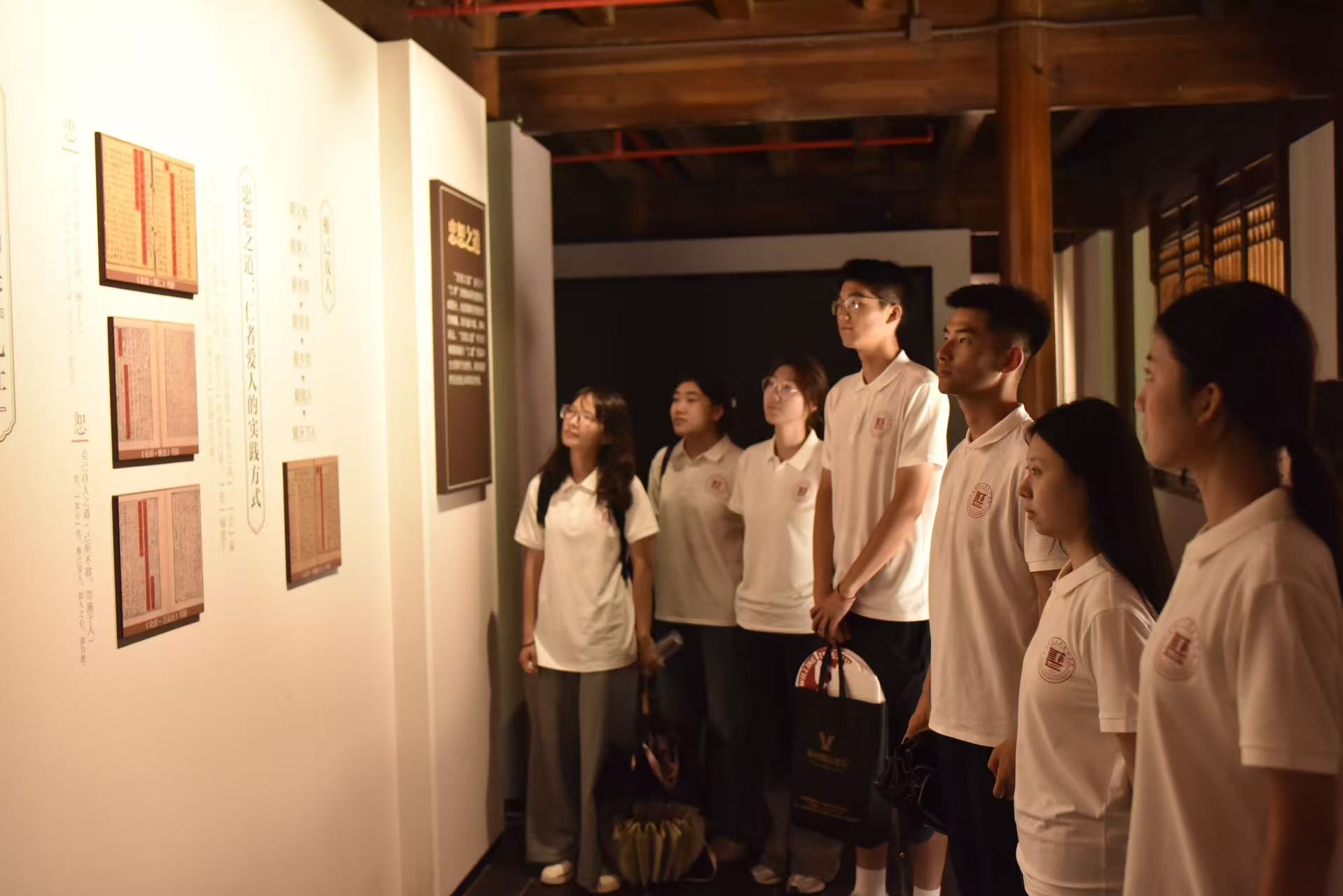 团队成员走进全国重点文物保护单位桐城文庙及安徽中国桐城文化博物馆,通过实地探访与深度研学,触摸桐城文化千年脉络,感悟“文都”的精神底蕴。在桐城文庙这座被誉为“进士举人摇篮”的元明清礼制建筑群中,实践团成员沿中轴线探访棂星门、泮池、大成殿,感受“礼让谦和”和“以文化人”的精神内核。在桐城文化博物馆内,成员们重点参观了四大主题陈列:在“精品文物馆”观摩春秋兽耳尊、南宋龙泉窑洗等镇馆之宝;于“桐城派文物陈列馆”梳理清代最大散文流派的兴衰历程;通过严凤英艺术生涯陈列感悟黄梅戏文化魅力;更从万余件馆藏中研读方以智、姚鼐等明清名家的手迹真品,切身感受书画收藏与桐城文脉的深度融合。“一砖一瓦皆是史,一墨一印总关情”,此次溯源之旅,不仅让青年学子从建筑、文物与历史人物三重维度重构了对桐城文化的认知,更激发了他们思考传统文化在当代的传承路径。这座“冠盖满京华,文章甲天下”的千年文都,正以其丰厚的文化基因,为新时代青年筑牢文化自信之基提供不竭源泉。