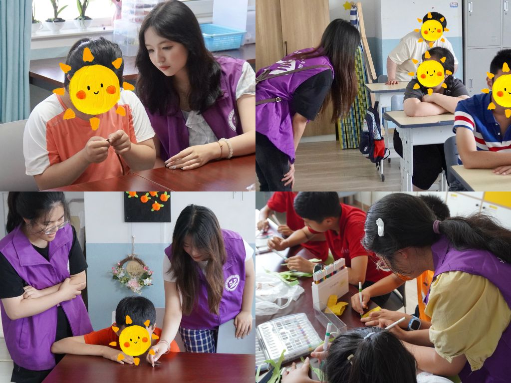 团队成员走进课堂,协助特教老师们维持秩序并开展一系列艺术活动。在音乐教室,孩子们在手鼓的轻敲与儿歌的齐唱中,感受着音符跳跃的韵律之美;在手工区,彩色的黏土在指尖塑形,扭扭棒在巧手中变幻出缤纷造型,每一次专注的揉捏与拼接,都悄然提升着孩子们的动手能力与专注力;在运动场,羽毛球、飞盘与乒乓球的活力碰撞,不仅锻炼了体魄,更在奔跑与欢笑中传递着运动的纯粹快乐。实践团队长真挚地表示,“我们期待用音乐、手工和运动这些桥梁,走进孩子们独特的世界,每一次看到他们专注参与的神情,看到他们完成作品时眼中闪动的光彩,都让我们深切感受到付出的价值。”