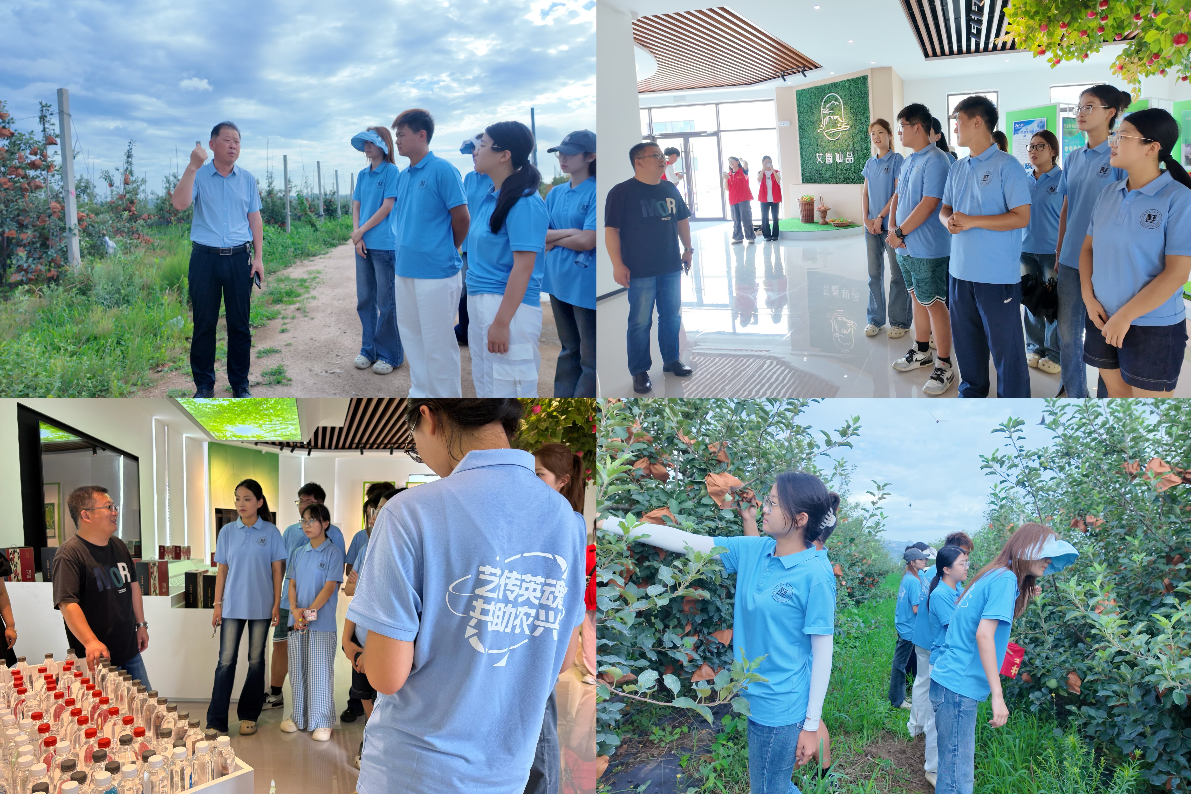 实践团走进郝家村中,这座位于蓬莱区村里集镇的村庄,近年来通过发展特色种植作物和独特的艺术墙绘,走出了一条农旅融合的乡村振兴之路。实践队邀请村党支部书记郝玉永讲述村庄变迁,这个曾经的全镇“落后村”,在他的带领下蜕变为全市乃至全省的“模范村”,其心路历程让队员们深受触动。下午的果园直播间里,果农手持果实介绍生态种植秘籍,让观众了解苹果从田间到餐桌的蜕变,展现出农产品深加工的硬核实力。直播转向村内艺术墙绘时,艺术的魅力令人眼前一亮。为践行“宣扬红色文化”目标,实践团成员登台演唱红色歌曲《相亲相爱一家人》,本校与烟台科技公司的志愿者们也携手登台,歌声将高校学子的青春活力与乡村的淳朴热情相连,让“共助农兴”的信念更加坚定,用艺术为乡村振兴注入活力。