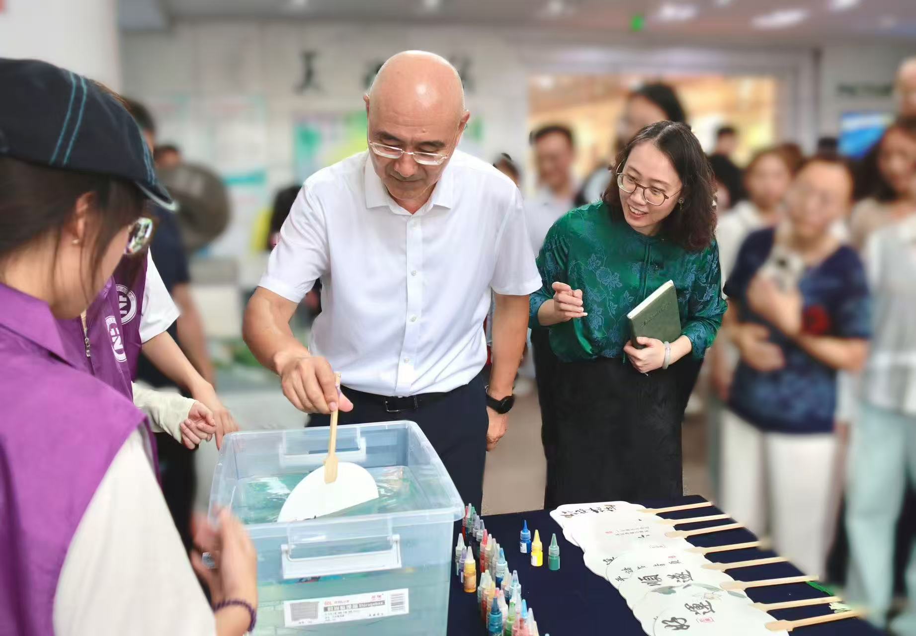 非遗匠心,漆扇雅韵。非遗漆扇制作体验区同样人气十足,新生们在工作人员指导下亲手上漆,完成独具个人风格的漆扇作品,感受传统工艺的匠心魅力。