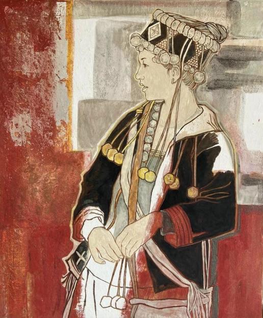 《哈尼少女》工笔重彩画 2020年
