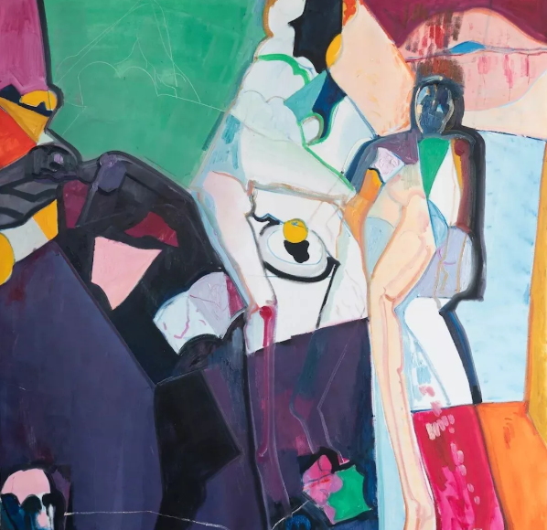 我以人的身体作为人的精神的载体,并将面孔被刻意隐去,甚至扭曲,以突出身体的整体动作的意向。感受凝结在人体的姿态之中,凝结在一笔一画地制造冲突与化解冲突的语言之中。她们或站立、或倒立、或飞翔、或挣扎,呈现出各种难以名状的姿态,暗示人的或愉悦、或苦闷、或痛苦的精神状态。画面中的直线、直面象征着技术的力量不断压迫、撞击着她们,以此表达人与其所处的世界的对峙的关系。绘画的场景无关具体现实,我只是将人体与其所处的世界做了嫁接,人成为山,山也成为人。他们的连接构造的不是关乎美的形式,而是一种关乎矛盾与痛苦的隐喻。