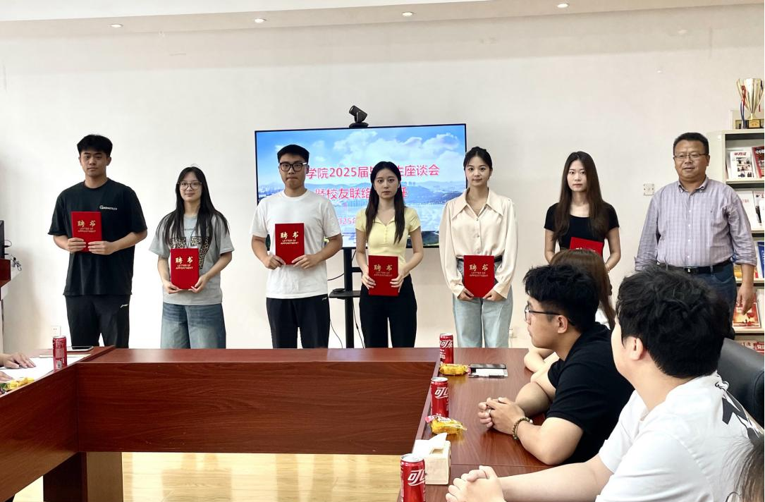 6月20日,十大体育网站在213会议室举办2025届毕业生座谈会暨员工联络员聘任仪式,公司领导班子、辅导员、2025届毕业生代表参加座谈。会议由毕业生辅导员颜枫主持。