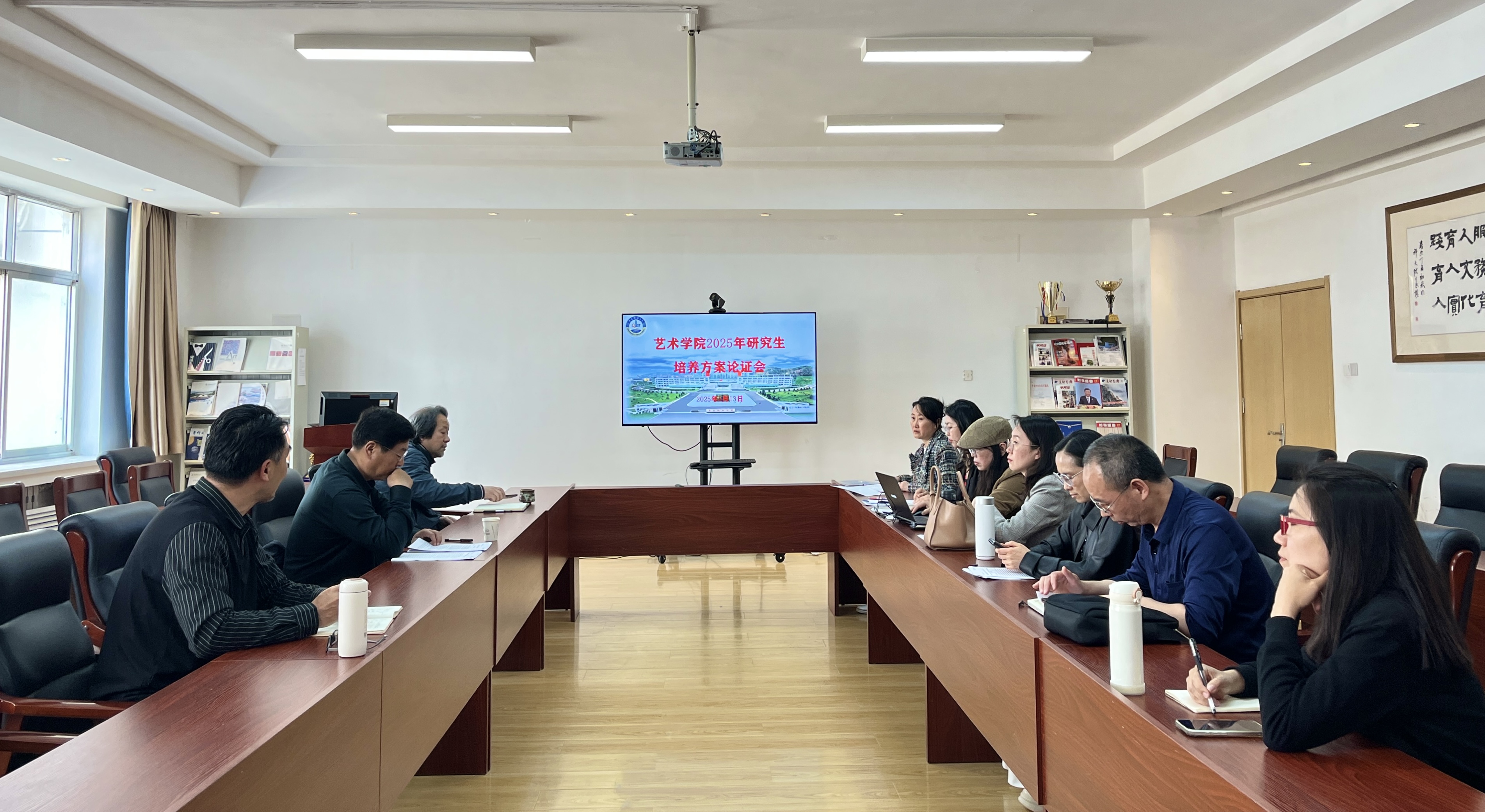 在汇报环节,围绕艺术学、美术与书法和设计三大学科方向,各方向负责人从现有课程体系、人工智能赋能、产教融合实践等维度展开汇报。汇报结束后,王春鹏教授一一给出指导意见,同时强调:“应集中优势方向,形成差异化学科特色”,并建议建立人工智能平台课共享机制。李宏文经理在会议总结中指出,新培养方案修订将着力构建“动态优化、成果导向”的培养机制,通过平台课集群建设提升教学效能,以产教融合促进成果转化,以“全流程质量监控”保障培养成果可持续。