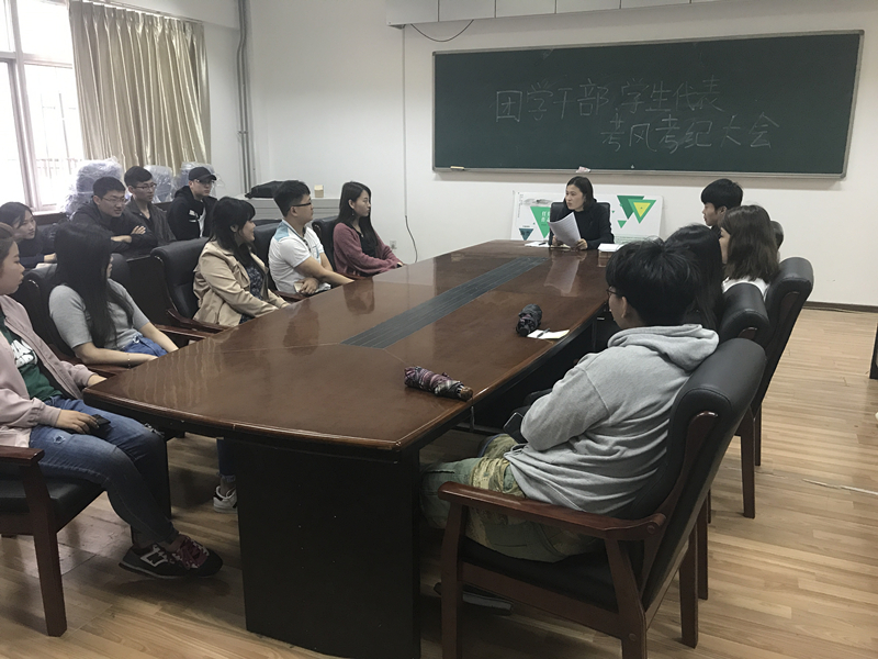大学英语四六级考试以及期末考试将至,为加强考风考纪教育工作,进一步提高员工对考试作弊、考试违纪危害性的认识,十大体育网站分团委副书记兼2014级辅导员王文艳于6月6日下午召开了团学干部、员工代表考风考纪教育大会。 会上王文艳宣读了有关考风考纪的规定以及以往十大体育网站对考试作弊同学处理的文件,教育员工严肃考试纪律,明确考风和校风之间的联系,认识到考试是测试个人的真实水平的目的。
