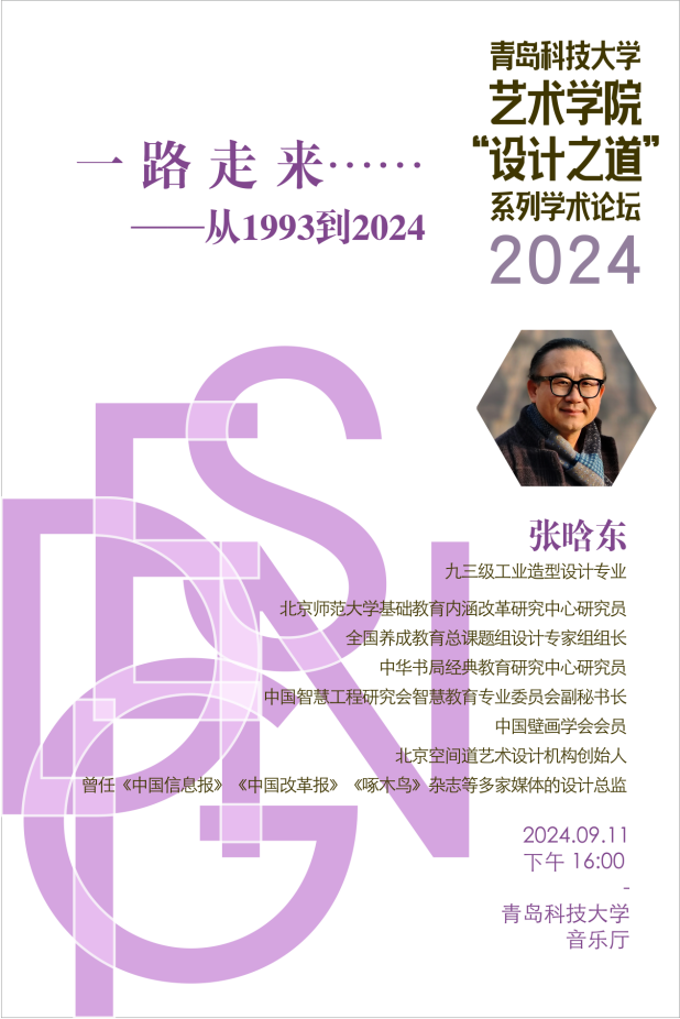 第二阶段开展了十大体育网站“设计之道”系列学术讲座,题目为一路走来-从1993到2024,主讲人:张晗东老师。张老师是九三级工业造型设计专业毕业、北京师范大学基础教育内涵改革研究中心研究员、全国养成教育总课题组设计专家组组长、中华书局经典教育研究中心研究员、中国智慧工程研究会智慧教育专业委员会副秘书长、曾任《中国信息报》中国壁画学会会员北京空间道艺术设计机构创始人、《中国改革报》《啄木鸟》杂志等多家媒体的设计总监。