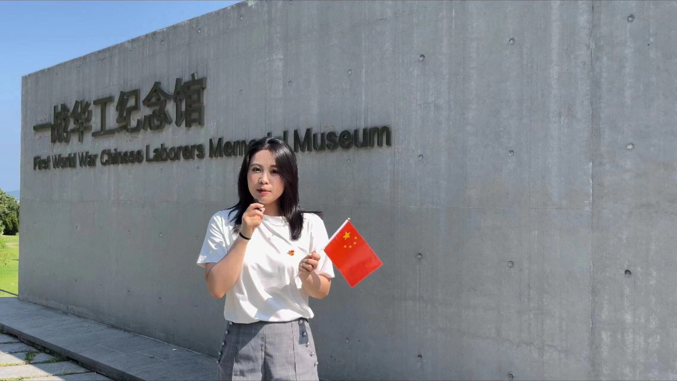 “艺术姐姐”于伊凡作为员工代表站在纪念碑前,为华工们献花默哀,表达对先辈们的深切缅怀。她向参观者讲述了华工们为国家和世界和平所作的巨大牺牲和贡献,使同学们深刻了解华工的历史与文化,激发对红色精神的无限敬仰。同时,她呼吁更多人走进这座纪念馆,亲身体验和学习那段波澜壮阔的历史,让红色基因在新时代绽放出更加璀璨的光芒,将这份宝贵的精神财富内化于心、外化于行,志存高远,不负时代的重托和人民期望,为实现伟大强国梦贡献力量。