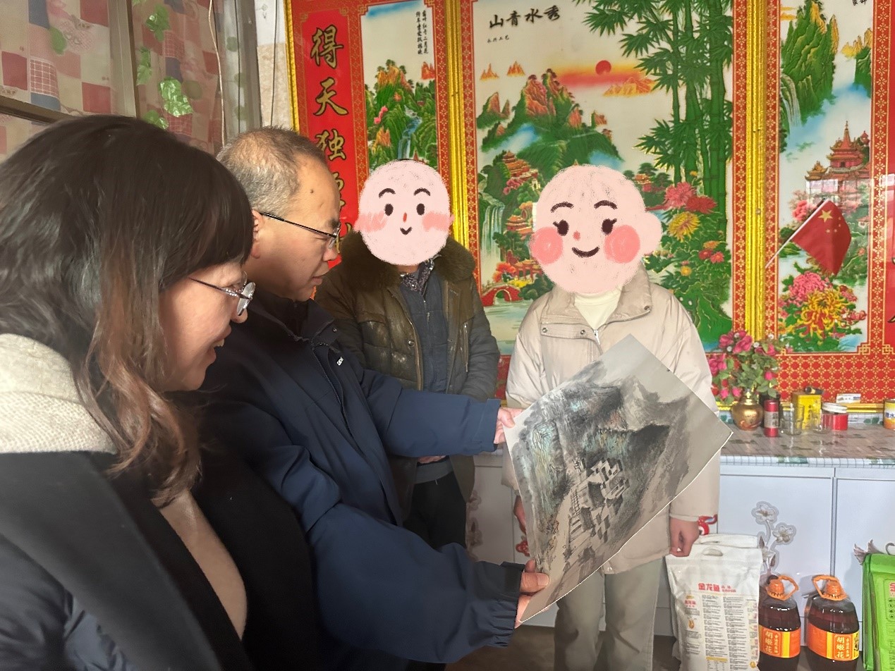 家访团队与员工及家长进行了面对面的深入交流。在交流中,老师们详细询问了员工的家庭状况和成长环境,就公司的资助政策、员工的未来规划等方面进行沟通。丁林代表公司向员工一家赠送科大“福”字,员工向公司赠送《溪山行旅》绘画作品。