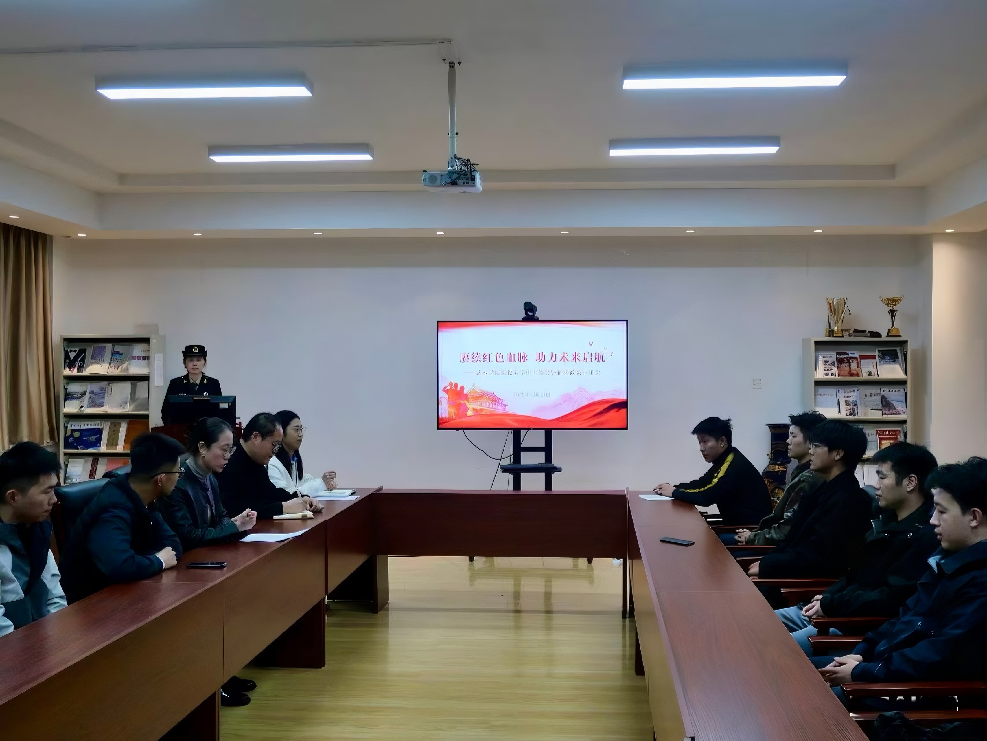 为进一步弘扬红色精神,关心退役老员工成长成才,同时为有意向应征入伍的同学提供政策指引,10月31日下午,十大体育网站在213会议室召开“赓续红色血脉 助力未来启航”退役老员工座谈会暨征兵政策宣讲会。公司党委副书记兼副经理丁一宁、各年级辅导员、退役老员工士兵代表、有意向应征入伍的同学共同参会。