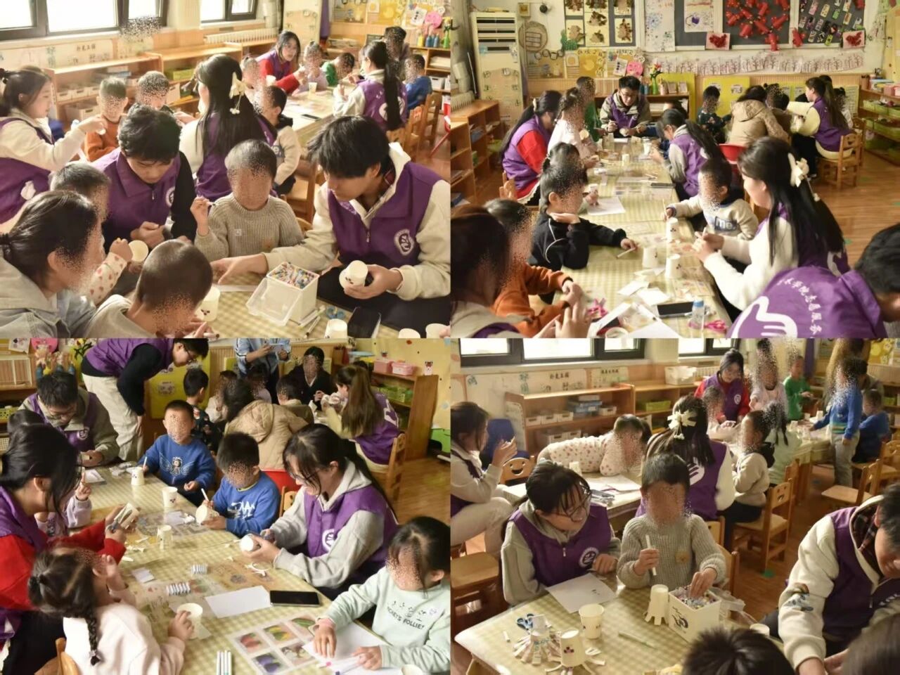 随后的“手工小章鱼”制作,则是一场精细动作与创造性思维的综合训练。志愿者们以“一对一”或“小组引导”的方式,辅助孩子们使用纸杯、彩笔等材料完成画、剪、折、粘等步骤。这一过程不仅是动手能力的锻炼,更是一个将内在情感与想象转化为外在具象作品的过程。孩子们在创造中获得掌控感与成就感,这对于构建自我认同与情绪平复具有积极作用。
