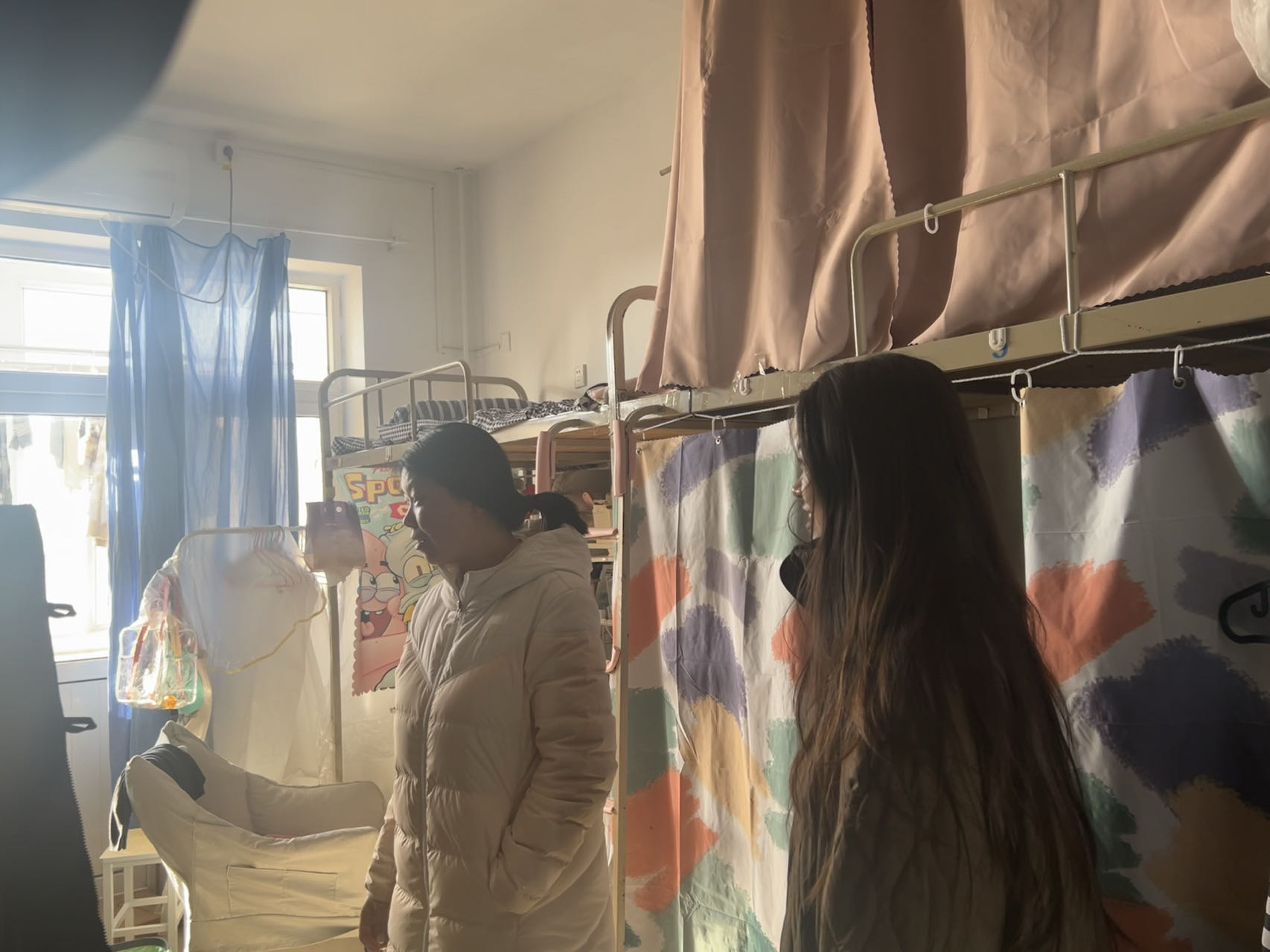 走访期间,老师们对员工宿舍卫生、安全设备以及公共设施进行了检查与提醒,希望同学们保持良好的卫生习惯,共建整洁、舒适、安全的住宿环境,并鼓励同学们珍惜大学时光,增强思想政治修为,全面提升自身素质。