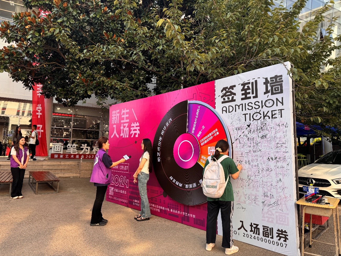 志愿服务,贴心周到。“艺术姐姐”志愿服务队成为了迎新现场的一道亮丽风景线。她们身着紫马甲,忙碌地为新生们提供引导、咨询、搬运行李等一站式服务。她们的热情与周到让新生们感受到了家的温暖,也成为了他们入学第一天最难忘的身影。