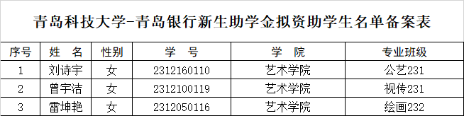 根据公司《关于评审2023年度青岛银行奖助学金的通知》的精神,经个人申请、材料初审、民主评议等环节,现就公司青岛银行奖助学金拟推荐名单进行公示,公示时间2024年4月30日-2024年5月7日。