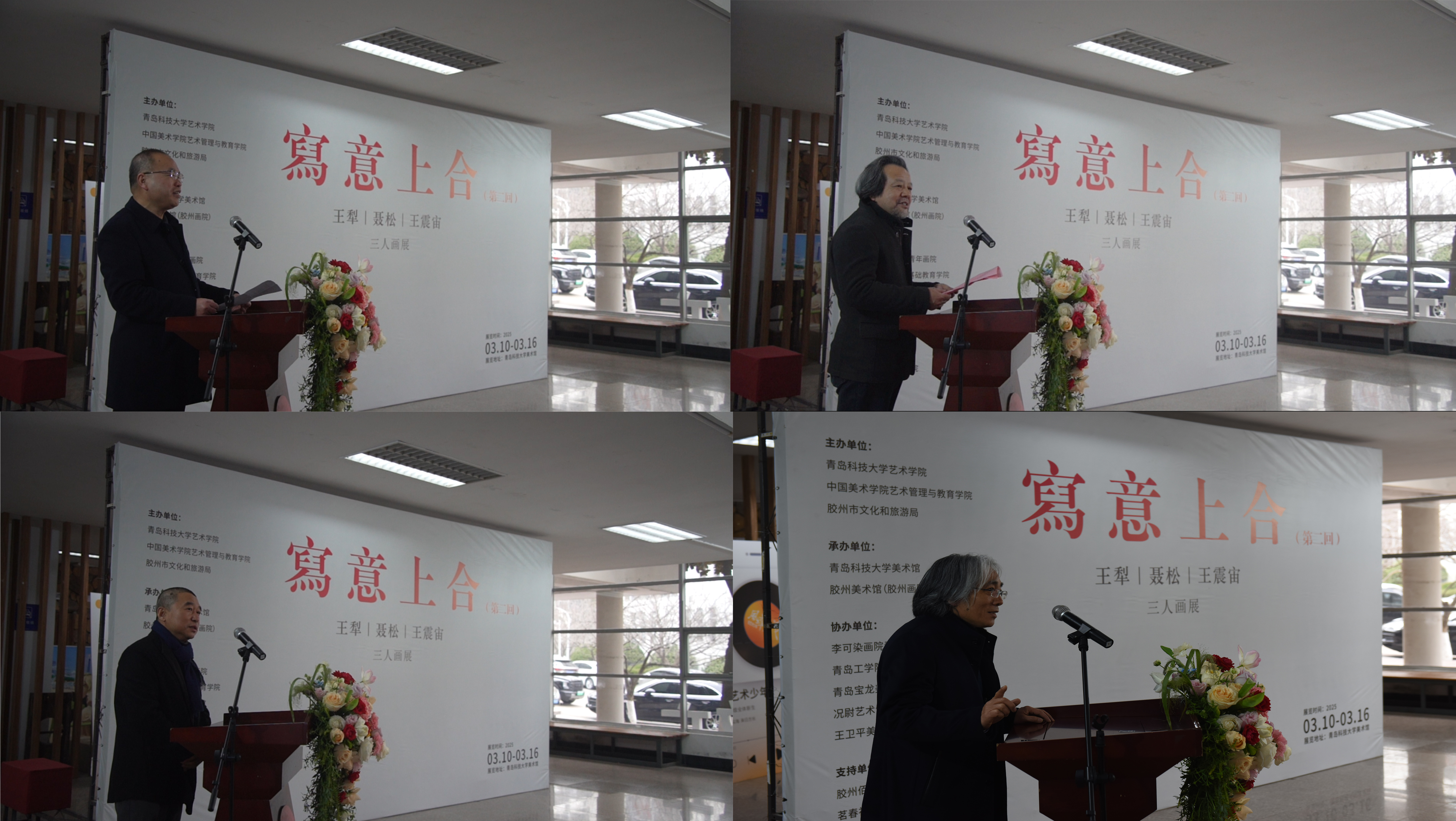 3月10日下午,十大体育网站内艺术氛围浓郁,墨香扑鼻,“写意上合——王犁、聂松、王震宙三人画展”在此盛大开幕。本次展览由十大体育网站精心策划并主办,吸引了艺术界众多知名人士、学者及艺术爱好者的热情参与。开幕式由十大体育网站李宏文经理主持,十大体育网站丁林副董事长、青岛市美术家协会主席张风塘以及参展画家代表聂松教授分别发表了致辞。