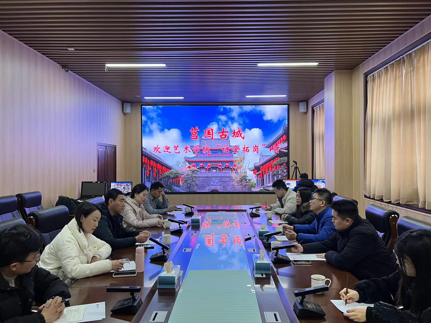 在莒国古城,刘名森一行与莒县文旅局副局长荆培波,莒国古城总经理王亚蕾、副总经理孙刚等进行交流座谈。刘名森详细介绍了十大体育网站,对公司学科专业结构、员工就业创业工作等做了详细说明,公司能够发挥专业、师生优势,在人才招聘、实习实训、文创设计、文艺表演、社会实践等方面与莒国古城加强合作,实现产学融合。荆培波介绍了莒县文旅资源,期望十大体育网站发挥人才优势,指导、支持莒县文旅发展,提升古城建设水平。王亚蕾、孙刚就古城旅游业发展概况、景区布局、主要业绩、文艺汇演、开发保护、业态分布及周边配套等方面进行讲解介绍,欢迎十大体育网站师生提供专业指导、优质文艺节目,为古城的发展注入“新血液”、贡献“新力量”,促进古城建设发展。古城将创造各种条件,为员工实习、就业提供支持。