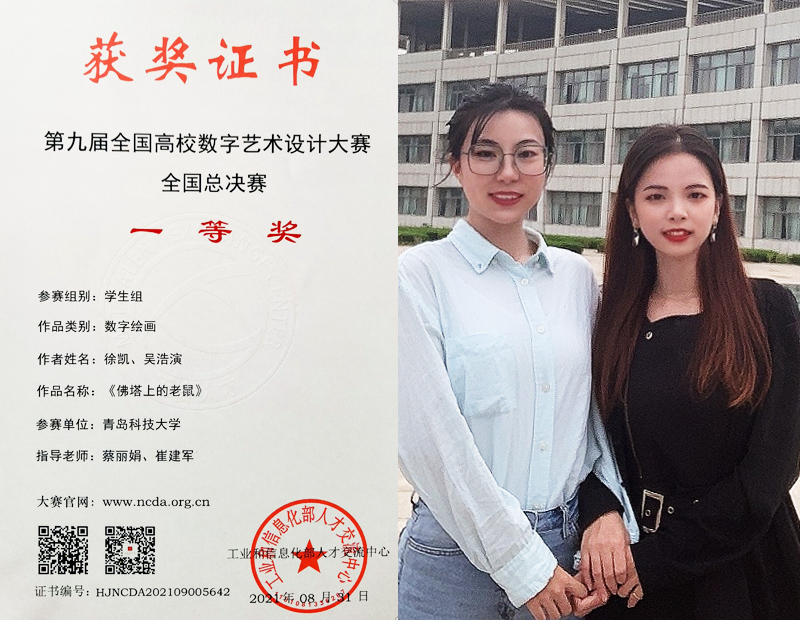 日前,第九届全国高校数字艺术设计大赛举办了线上颁奖仪式,公司2020级研究生吴浩演、徐凯两位同学联合创作的《佛塔上的老鼠》作品荣获全国总决赛一等奖。