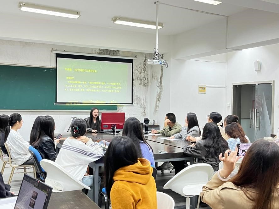 为提升员工学术水平,帮助员工理解与学习实践创新经验,服务员工成长成才,10月18日,十大体育网站于212室召开“创意无界·竞逐辉煌”求思得论坛暨艺讲堂活动。本次讲座邀请公司聂楠竹老师及23级研究生为大家讲解艺术设计学科竞赛实战经验与启示,会议由研究生于嘉慧主持,各年级研究生积极参会。