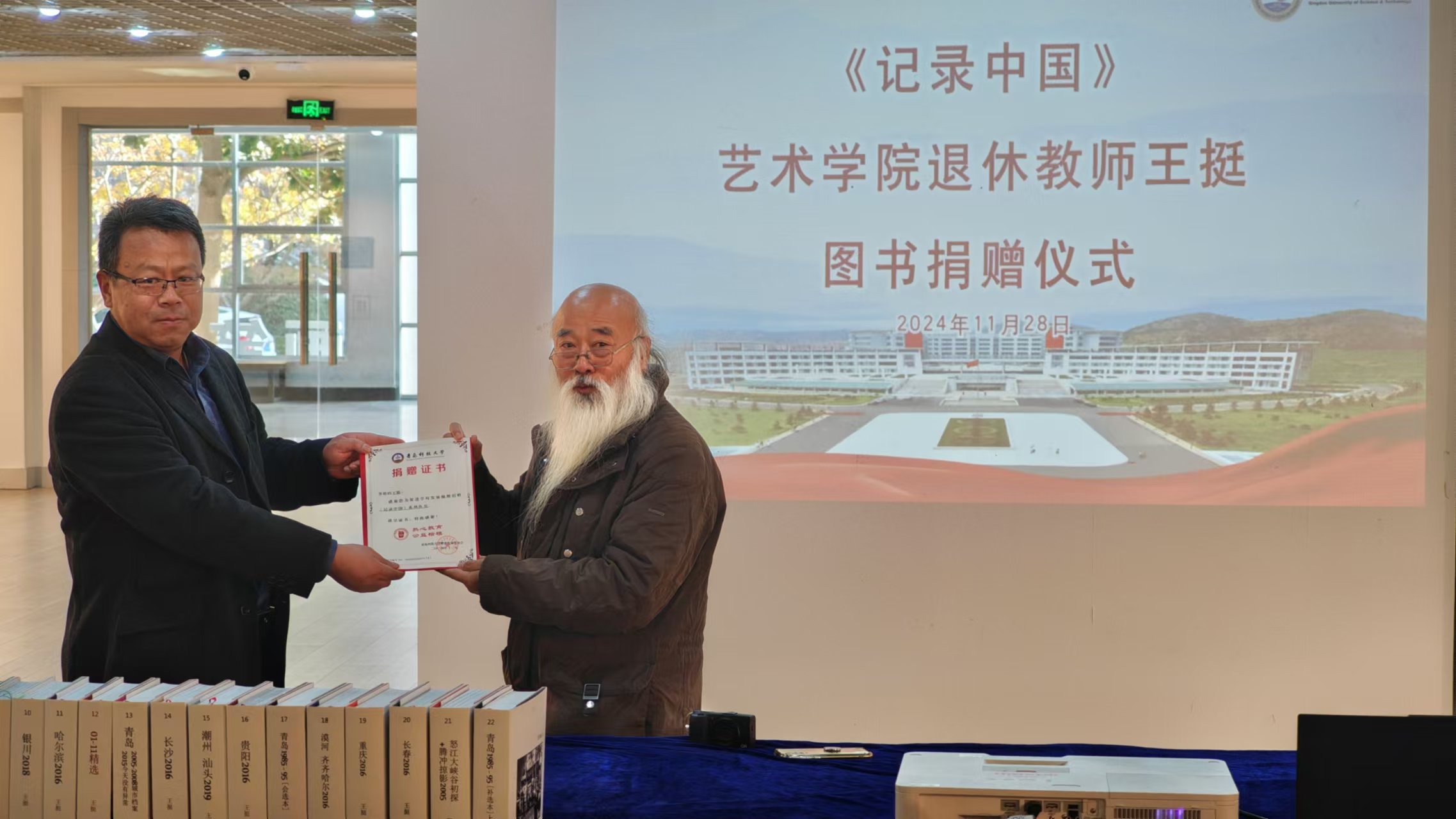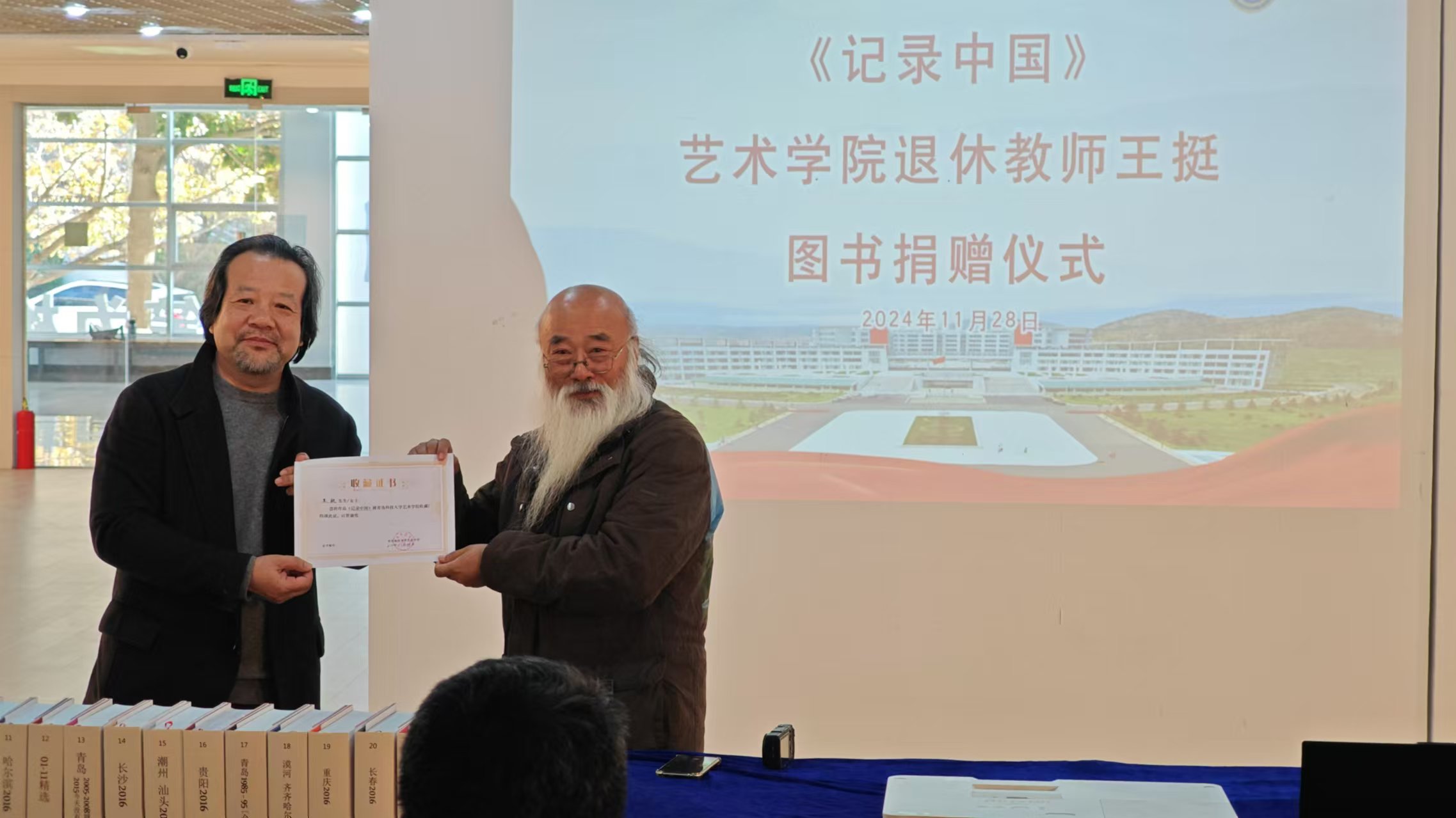 仪式上,王挺共捐赠《记录中国》系列图书22册,由十大体育网站资料室接收。李宏文、刘庆向王挺颁发收藏、捐赠证书。