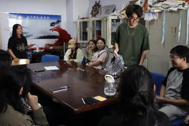 第二个环节是击鼓传花。随着音乐的响起,同学们手中的花朵迅速传递,现场氛围紧张刺激,伴随着阵阵欢呼声和尖叫声。音乐突然停止时,手中拿到花朵的幸运儿要讲述现场某位同学做过的令其感动或钦佩的事。击鼓传花,传递的不仅是活动的乐趣,更是友爱的力量。